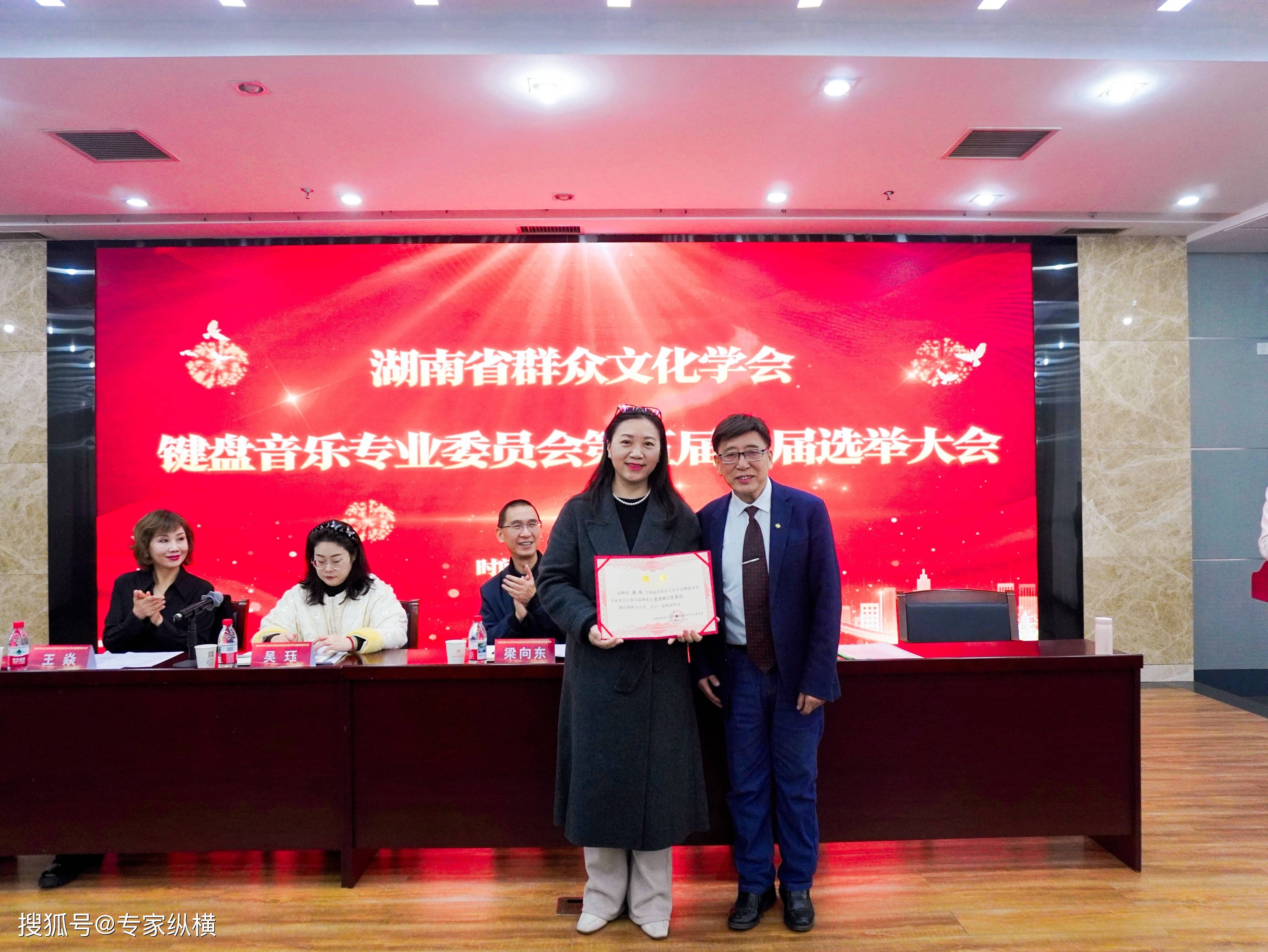 湖南省群众文化学会秘书长吴珏向省群文键盘音乐专委会第五届名望副从任委员颁布聘书